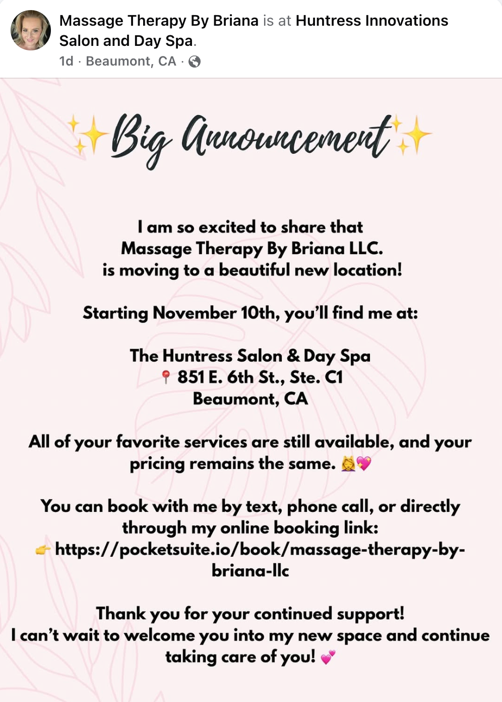 Book with me by text, phone call, or directly through my online Booking Link: Book an Appointment with Briana